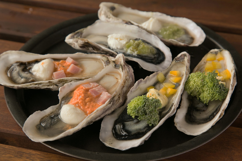 ・グリルドオイスター3種(カプレーゼ/香草バター/わさび醤油)