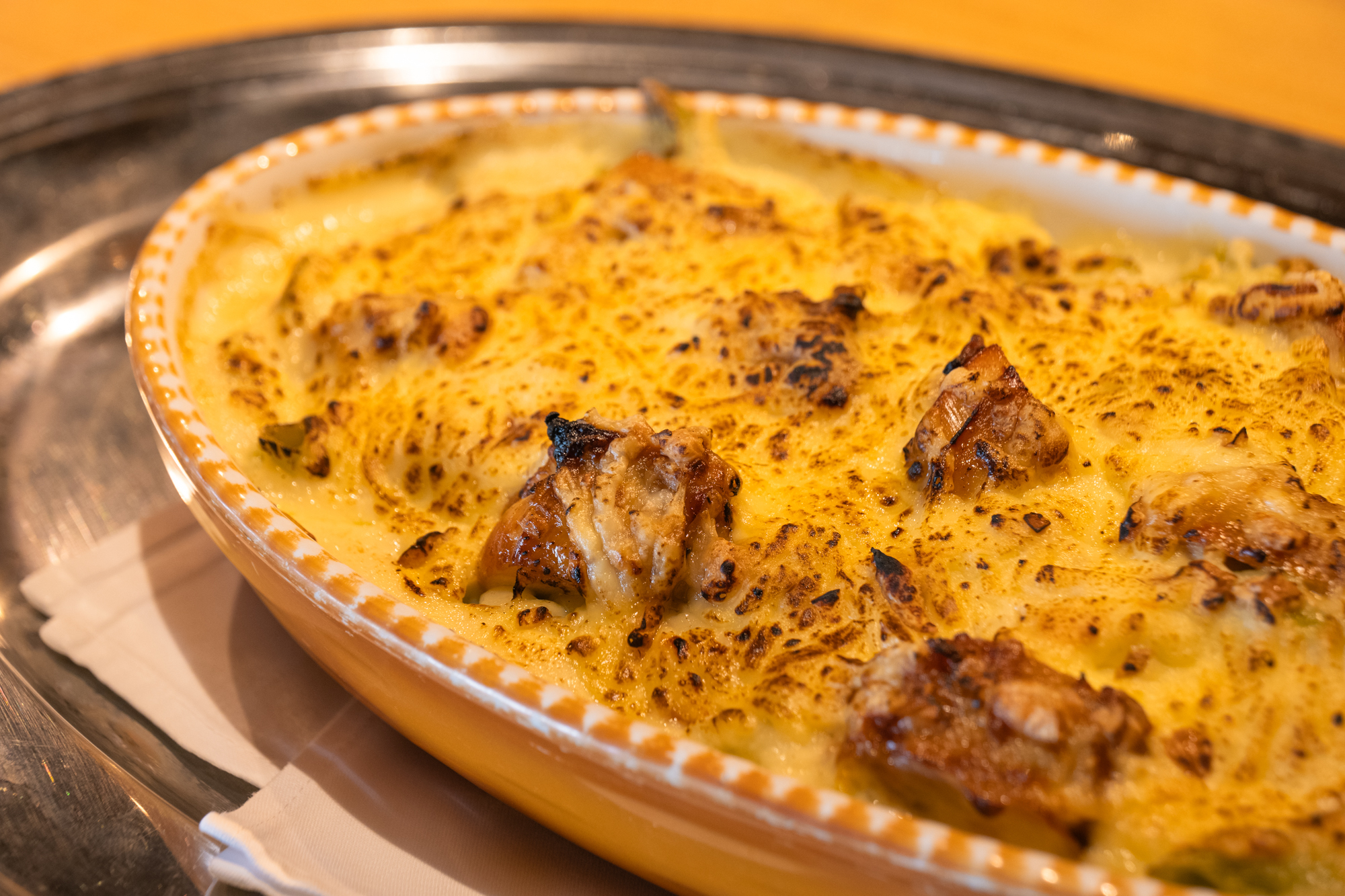 自家製ベシャメルソースのやさしいコクに、チーズの香ばしさが重なる冬の定番。とろりとしたソースと焼きたての香りが食欲を引き立てます。