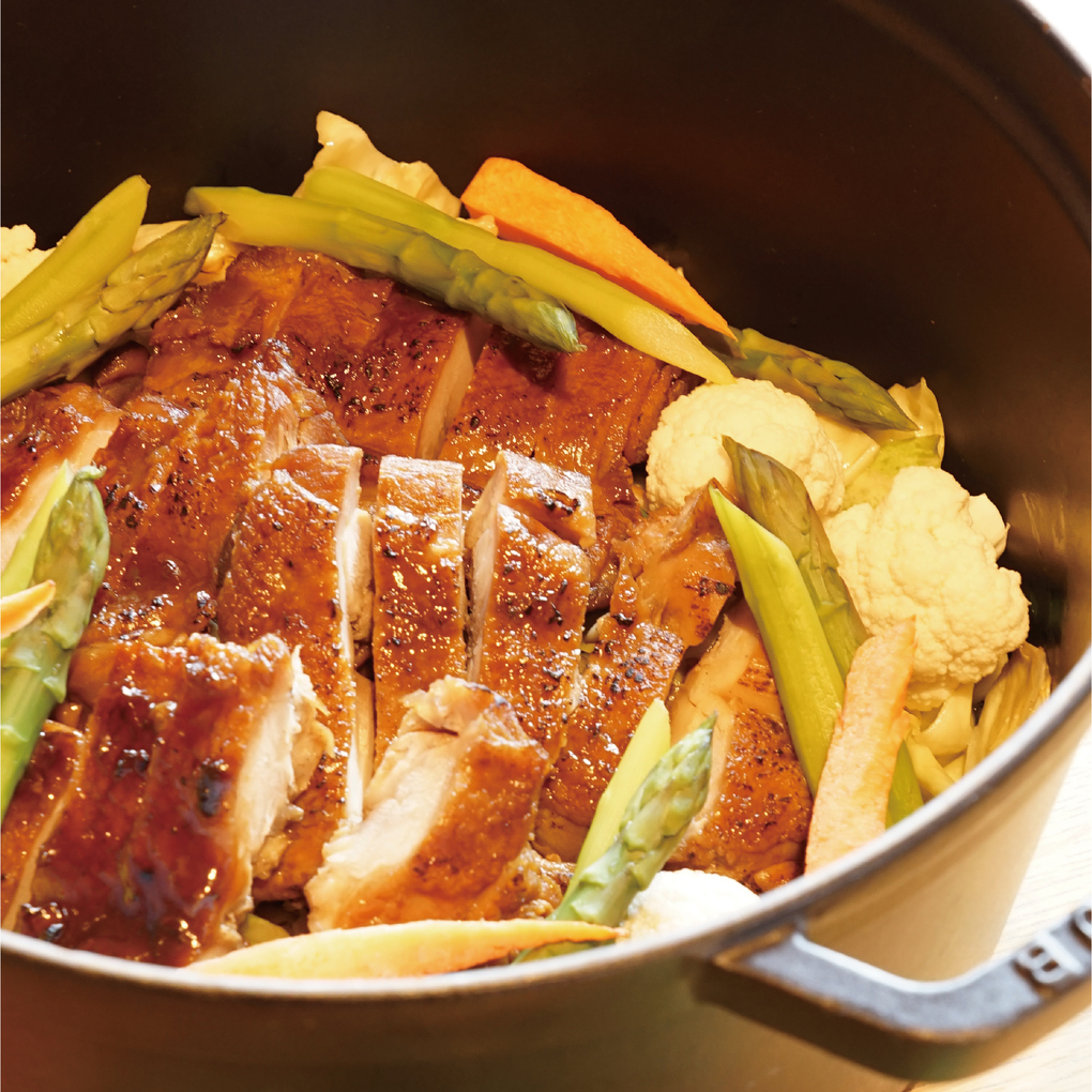 香ばしく焼き上げた照り焼きチキンに、新玉ねぎや春人参、アスパラガス、春キャベツを添えた彩り豊かな一皿。さらに、ロールキャベツとソーセージをコンソメ風味でやさしく煮込んだ料理など、春野菜の持ち味を生かしたメニューが並びます。キャベツや人参、自家製ベーコンを使ったミネストローネスープもご用意しました。野菜の旨みがじんわりと広がる、朝にうれしいやさしい味わいです。